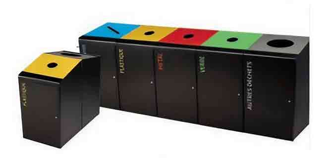 - Identification du tri (texte sérigraphié sur le corps, plaque de couleur avec ouverture calibrée, signalétique comprenant des pictos, texte en français et anglais, braille disponible sur devis )