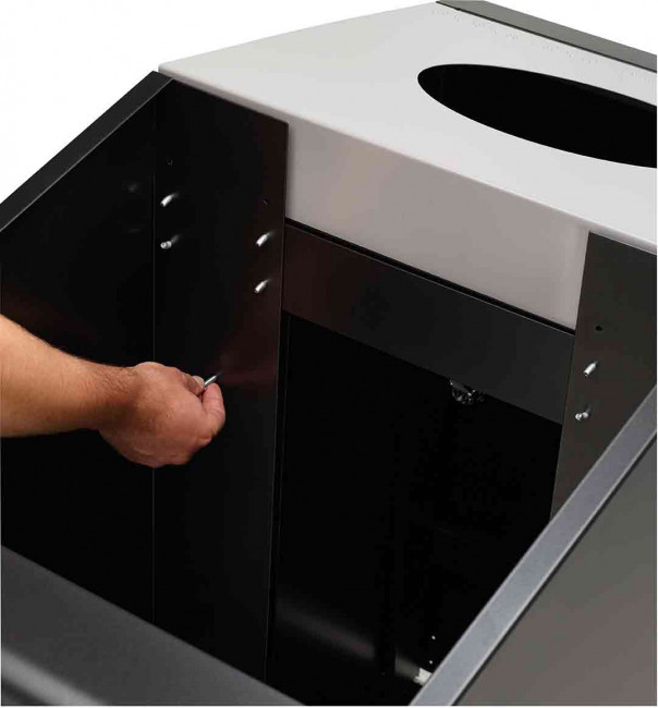 poubelle est fabriqué en acier poudré anti-UV ce qui lui confère une résistance extrême à la corrosion et aux produits chimiques.