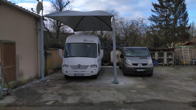 23/09/2025Nous avons besoin un carpot pour camping car de 3m×7m et 3,30 m de hauteur de passage. On a besoin que ça soit avec trois poteaux juste d un côté.