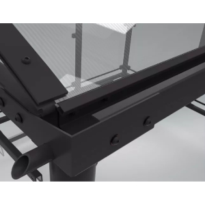Toiture en voûte avec gouttières et cloisons transparentes