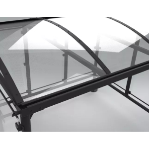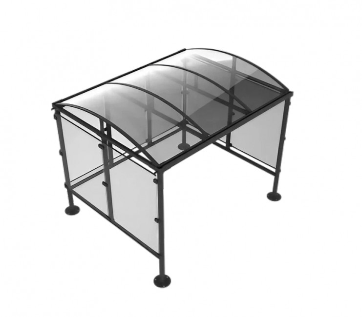 Les côtés et la toiture sont habillés en polycarbonate ou en polycarbonate associé à d’autres habillages, ce qui apporte une bonne luminosité à l’intérieur de l’abri.