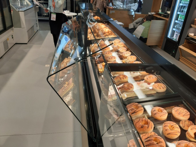 Comptoirs avec bar et présentation des entrées et desserts salades sandwicheries .