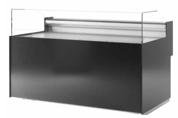 Cette vitrine réfrigérée existe en 4 dimensions offrant une surface d’exposition de 0.6 à 1.2m2, éclairée par un système de LED.