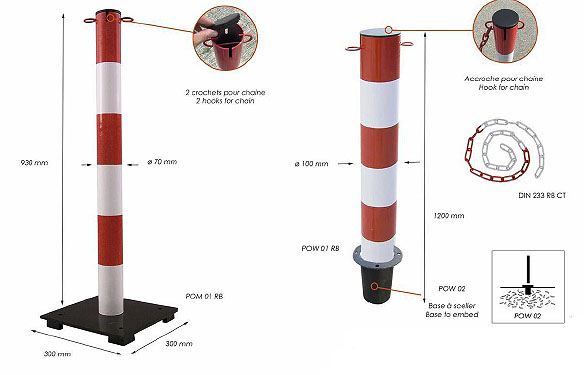 Ces poteaux de balisage sont fabriqués en acier peint et sont dotés de larges bandes réfléchissantes pour une visibilité optimale de nuit.