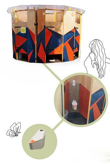 Chaque module comprend deux cabines équipées d'urinoirs en inox, d'un verrou, d'un éclairage autonome et d'une poubelle.