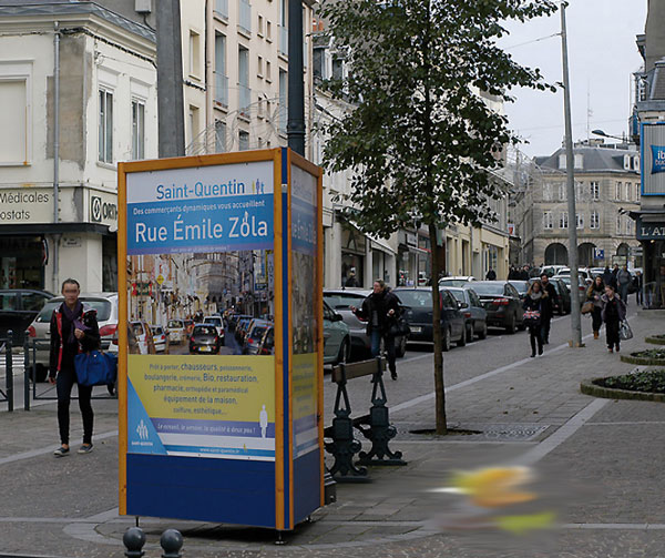 Je souhaite un produit similaire à votre Colonne affichage exterieur totem avec installation à positionner devant une halle de marché de ville. Je cherche structure et les panneaux sur les 3 faces. Panneaux amovibles : un panneau "affiche de l’événement », un panneau avec un plan du marché et un 3e panneau avec le nom des commerçants.