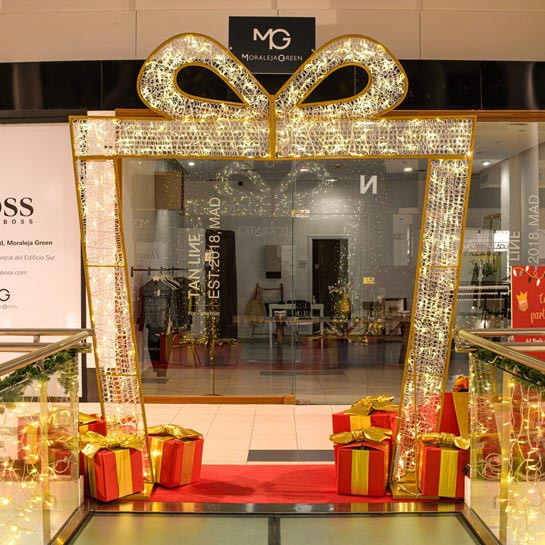 Accueillez vos invités avec cette arche cadeau dorée LED parfaite pour ajouter une touche de charme à une entrée.