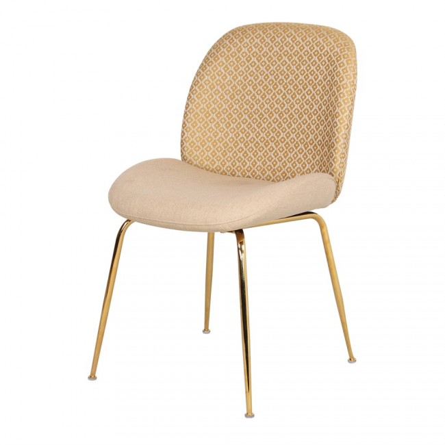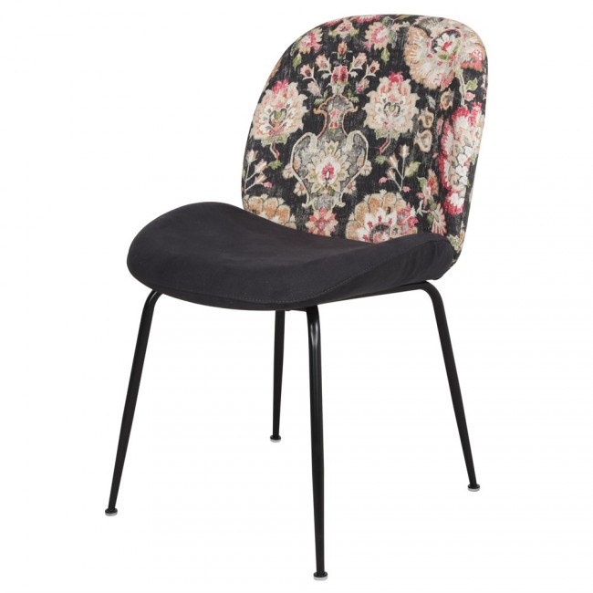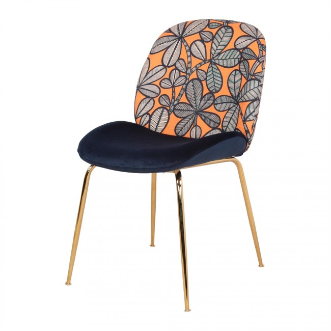 Ces chaises de salle à manger sont munies de quatre pieds en métal. Elles possèdent également une assise et un dossier en tissu avec différentes sortes de motifs géométriques ou encore floraux. Plusieurs couleurs sont disponibles.