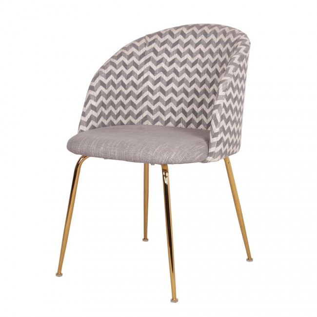 Chaise de style contemporain avec structure en acier. Assise en velours et dossier à motifs géométriques.