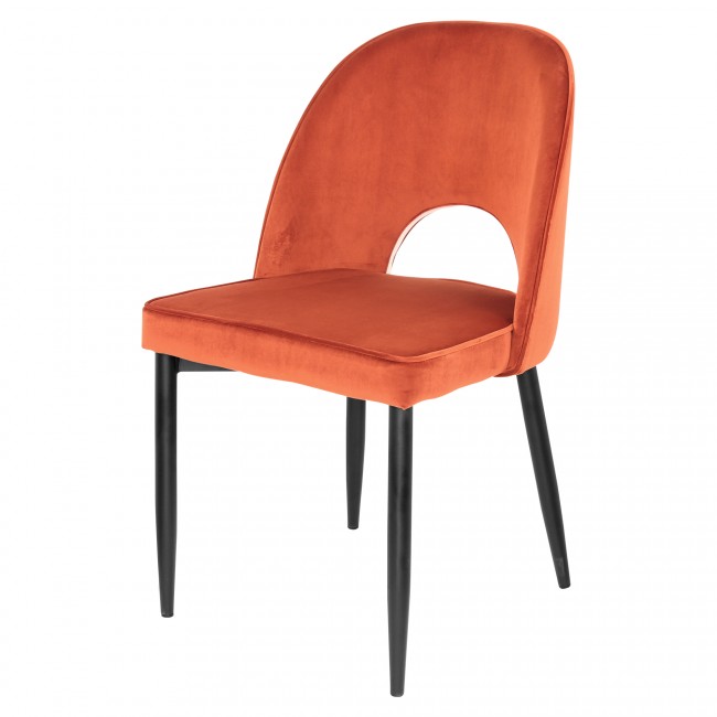 Chaise de style contemporain, avec une structure noire en acier et en bois. Le revêtement de l’assise est en velours, facile à nettoyer et très commode. Les dimensions sont les suivantes: 65,5 x 51,5 x 78,5 cm.