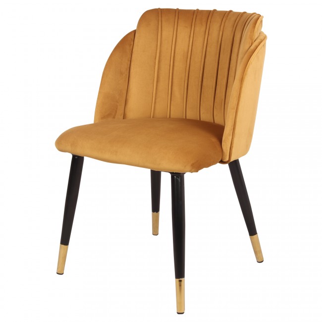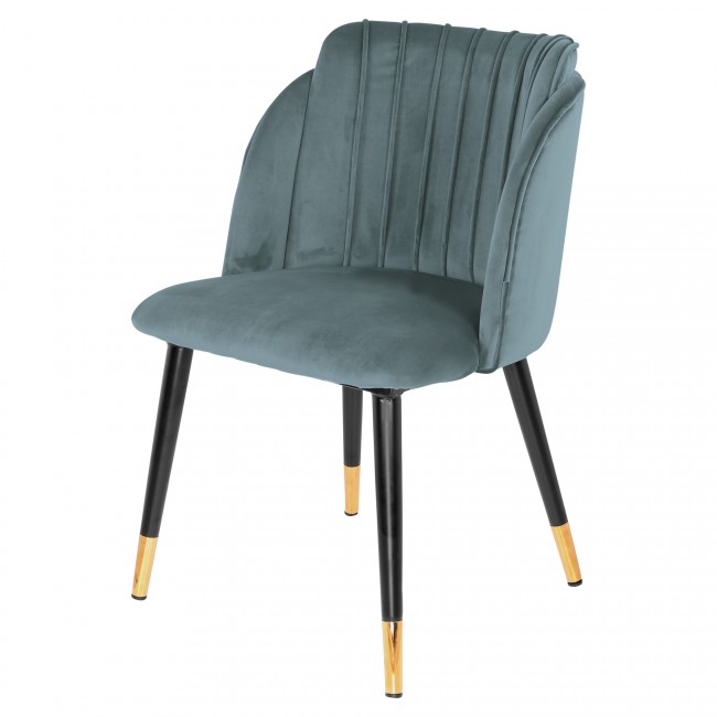 Chaise de style contemporain, avec une structure noire en acier, laiton et en bois. Le revêtement de l’assise est en velours, facile à nettoyer et très commode. Les dimensions sont les suivantes: 65,5 x 51,5 x 78,5 cm.