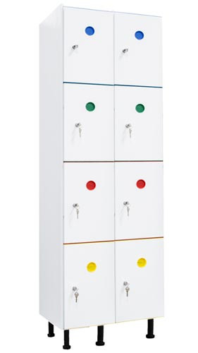 Réf. TC : 825179327Casier vestiaire PVC 2 colonnes de 4 cases (soit 8 casiers) 1915 x 816 x 470 Serrure à clé Rouge