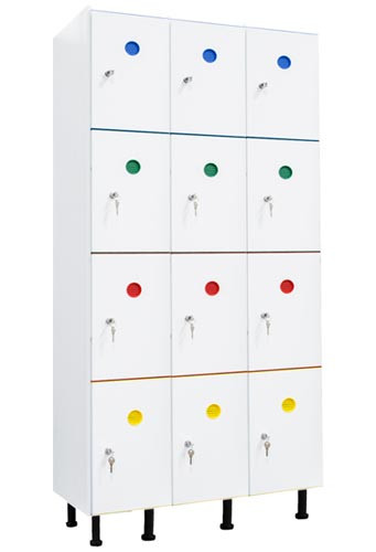 Réf. TC : 837867376Casier vestiaire PVC 3 colonnes de 4 cases (soit 12 casiers) 1915 x 933 x 470 Serrure à clé Rouge