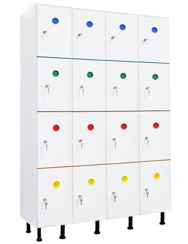 Réf. TC : 398932973Casier vestiaire PVC 4 colonnes de 4 cases (soit 16 casiers) 1915 x 1238 x 470 Serrure à clé Rouge