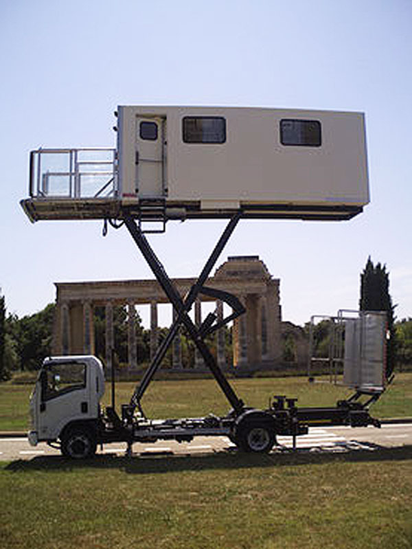 - Type fourgon ambu lift routier pour des véhicules à partir 11 T, avec une hauteur d’élévation du fourgon 5.90 mètres maxi et 1.20 mètres mini.