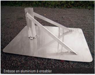 Le jeu comprend deux embases en aluminium (980 × 730 mm) destinées à être ensablées à 390 mm de profondeur.
