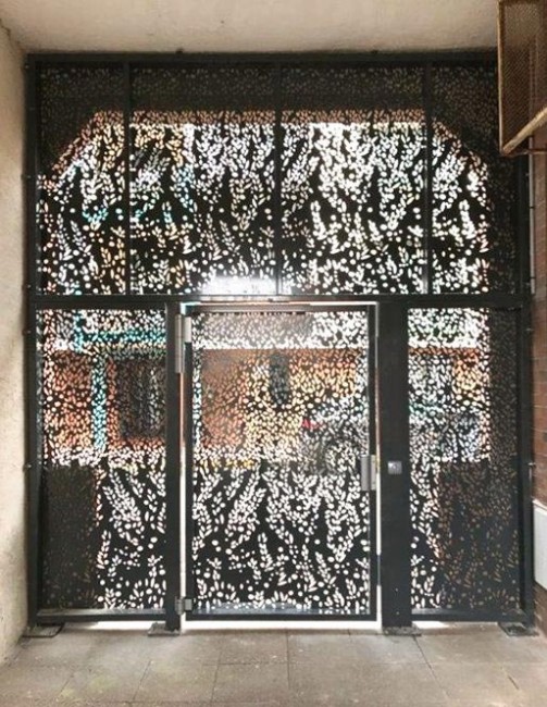 04/04/2023Tôle perforée décorative – Modèle BRIGADINE. 2 plaques Dimensions chacune 1115x1770mm. et 1 plaque isolé 655x1790.