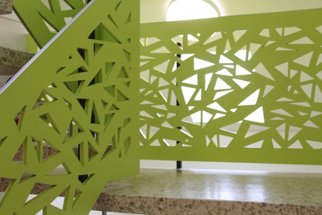 - Rampe colorée d'escalier pour le bâtiment administratif,