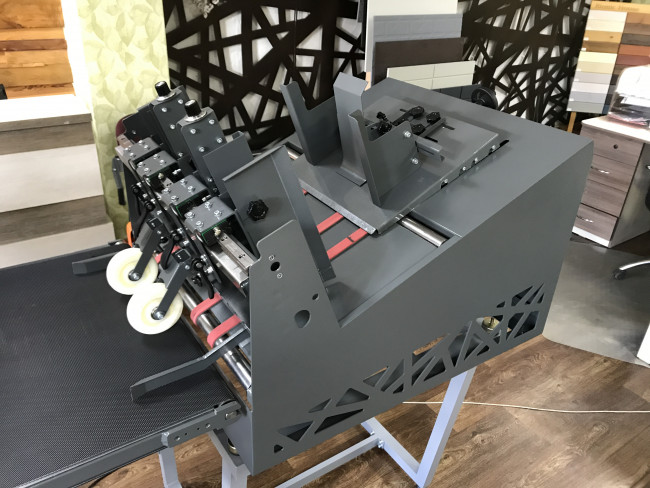 Le module principal est le cadre en acier avec pieds réglables sur lesquels les guides verticaux qui déplacent les chariots à l'aide de fourches sont fixés. Le levage et la fixation sont effectués à l'aide d'une vis entraînée dont l'écrou est fixé sur fourche qui a les guides horizontaux permettant à l'imprimante d'être montée et fixée sur les chariots dans la position souhaitée. La tête d'impression peut être relevée jusqu'à 30 cm.