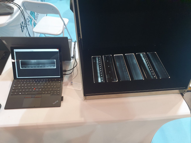 L'appareil photo numérique Ultra HighRes 2D prend des photos d'images radiographiques qui peuvent être vues sur l'écran en quelques secondes. Plusieurs films plus petits peuvent être placés sur une grande zone de numérisation en même temps.