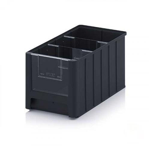 L’ouverture frontale de 152 x 126 mm facilite l’accès rapide au contenu, y compris lorsque les bacs sont empilés ou positionnés sur des étagères.
