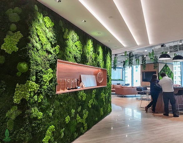 Les revêtements muraux en végétal stabilisé offrent une nouvelle façon originale d'intégrer des éléments de décoration verts dans les espaces intérieurs.