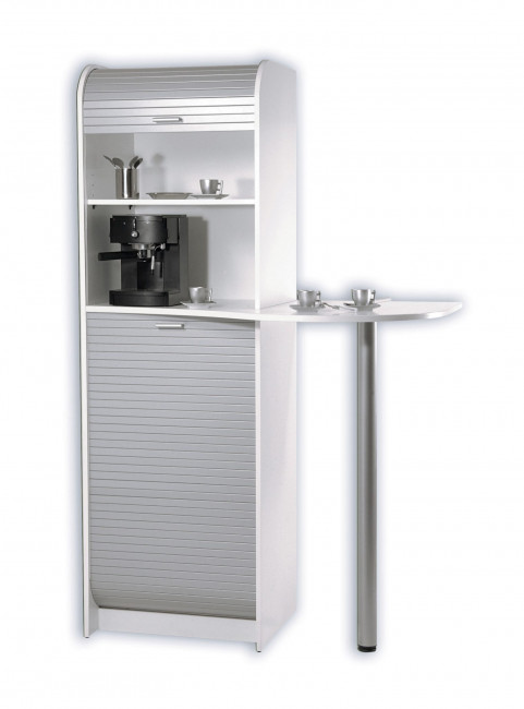 Polyvalent et compact, il sera votre nouvel allié du coin café, ainsi vous pourrez déguster votre boisson chaude en petit comité, ou tout simplement pendant la pause déjeuner. Ouvert, partiellement fermé ou totalement clos, il conservera votre micro-ondes, votre machine à café, les dosettes et tout ce qui vous permettra de faire une pause snack.