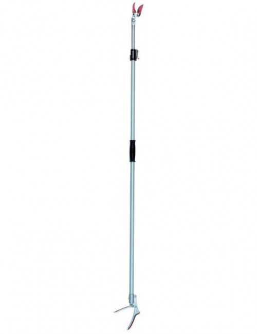 Le sécateur est fabriqué avec une perche télescopique, qui mesure 1,80 m repliée et 3 m dépliée.