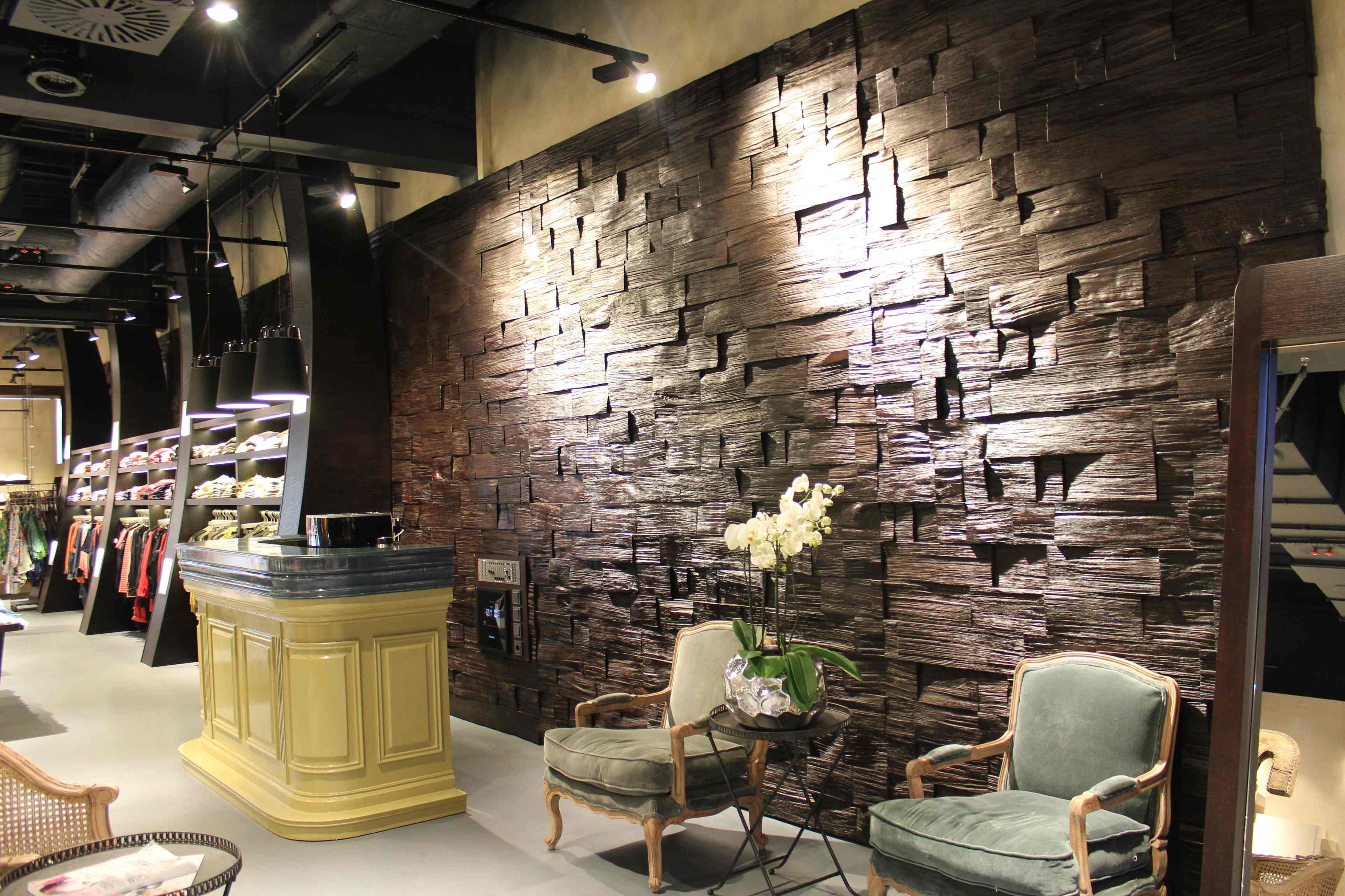 - Ces panneaux muraux réalisés en mosaïques de bois recyclé donnent une réelle impression de vécu à votre mur.