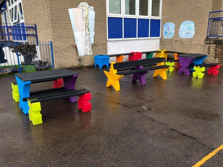 Ces bancs enfants avec pieds en forme d’étoile permettent aux enfants de s'amuser et de s'asseoir.