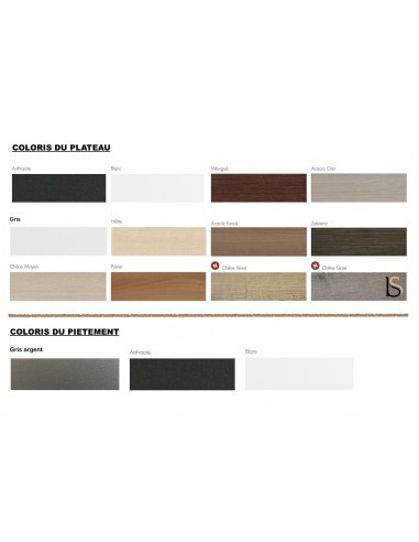 Son plateau est en mélaminé de 25 cm d'épaisseur disponible sous 12 couleurs différentes.