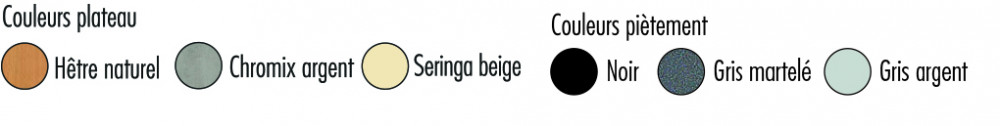 - Chant souple antichocs gris (plateau toile argent) ou marron (plateau hêtre naturel et seringa beige),