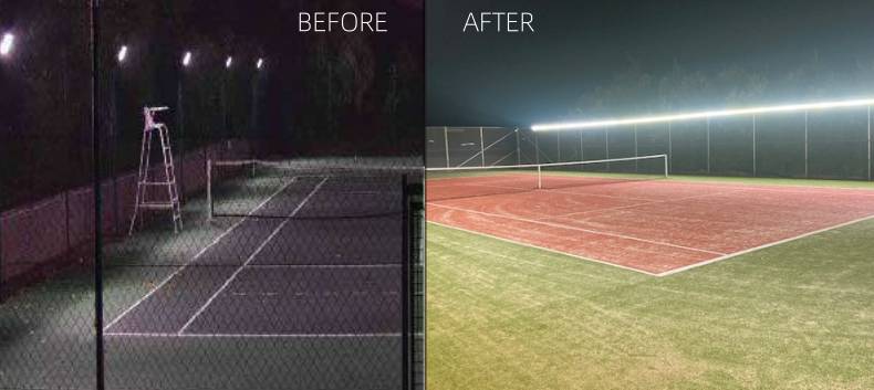 Ce système d’éclairage LED pour court de tennis extérieur combine puissance, fiabilité et économie.