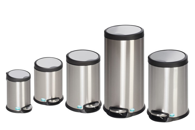 Inox Capacité : 3 à 30 L Fermeture du couvercle en douceur par amortisseur Seau intérieur plastique noir (poignée).