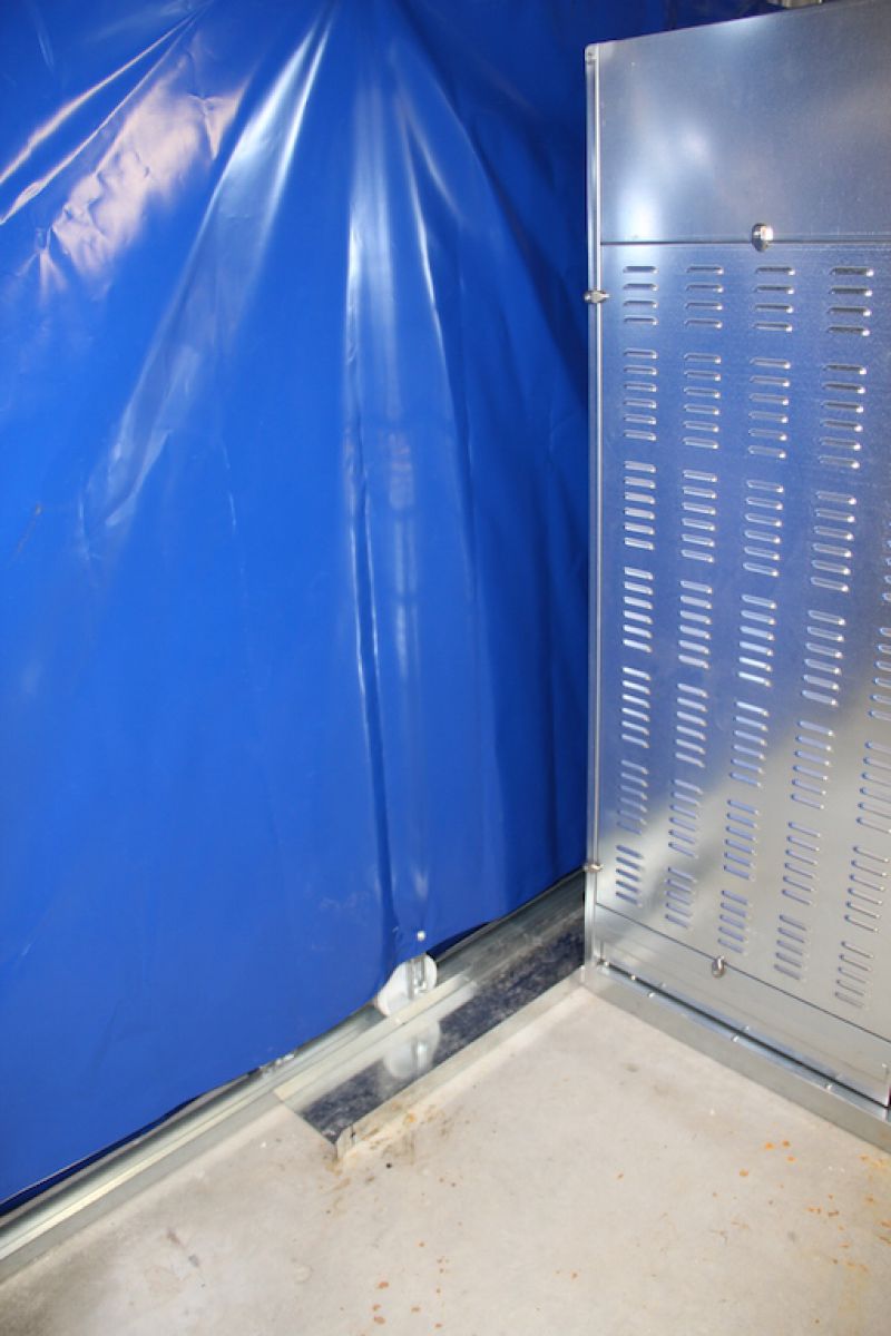 Le concept fondamental du tunnel est, aussi, qu'il peut être compacté pour récupérer non seulement l'espace de travail, mais aussi pour pouvoir être repositionné avec l'aide d'un chariot élévateur ou même transporté (monté) sur un autre site de production.