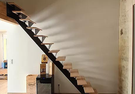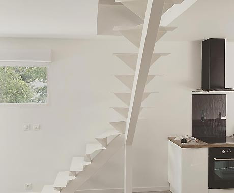Nous réalisons des escaliers limon central avec thermolaquage et marches bois. Étude sur mesure.