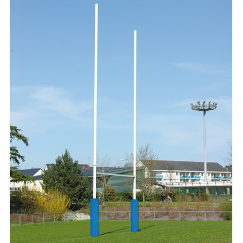 Ces poteaux de rugby sont en 2 parties, la liaison se fait par coulissement de la partie haute dans la partie basse par manchonnage.