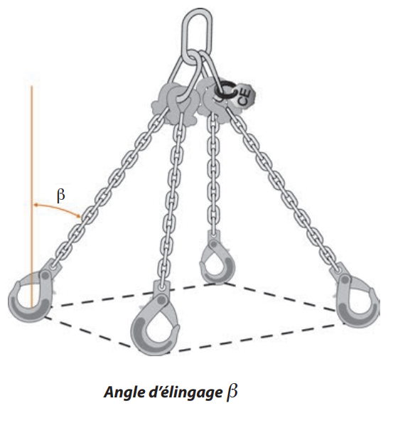 D'une longueur de 0,5 à 4 m (selon modèle), cette élingue de levage est équipée de 4 brins.