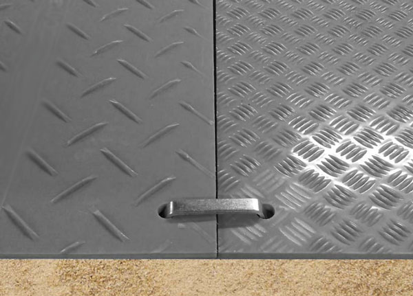 - Solidité : chaque plaque supporte jusqu’à 80 tonnes (35 tonnes/m2). De lourds véhicules peuvent facilement circuler sur les tapis qui assurent la protection des sols.