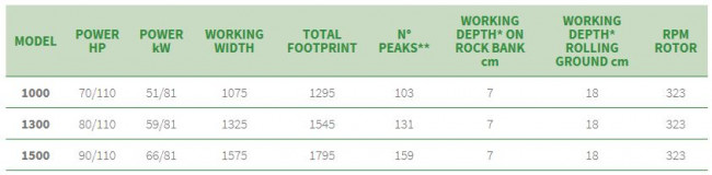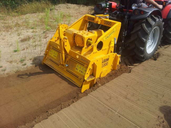 Le broyeur de pierres Valentini FL-LEON 1T permet de travailler dans le sol jusqu’à 18 cm, il se décline en différentes largeurs de travail de 1000 à 1500 mm. Suivant la largeur de travail souhaitée, il faut un tracteur de 70 à 110 CV pour l’entrainer.