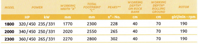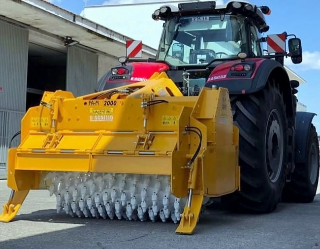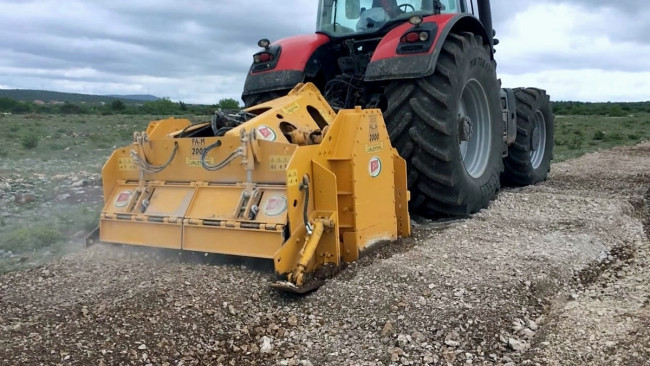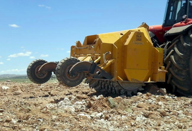 Le broyeur de pierres Valentini FA-M-ATTILA-M permet de travailler dans le sol jusqu’à 70 cm, il se décline en différentes largeurs de travail de 1800 à 2300 mm. Suivant la largeur de travail souhaitée, il faut un tracteur de 320 à 450 Cv pour l’entrainer.