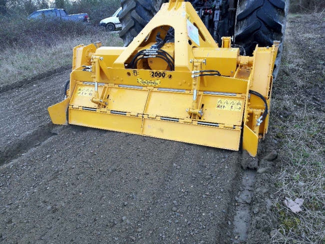 Le broyeur de pierres Valentini FI-IVAN 2T permet de travailler dans le sol jusqu’à 40 cm de profondeur, il se décline en différentes largeurs de travail de 1800 à 3000 mm. Suivant la largeur de travail souhaitée, il faut un tracteur de 200 à 400 CV pour l’entrainer.