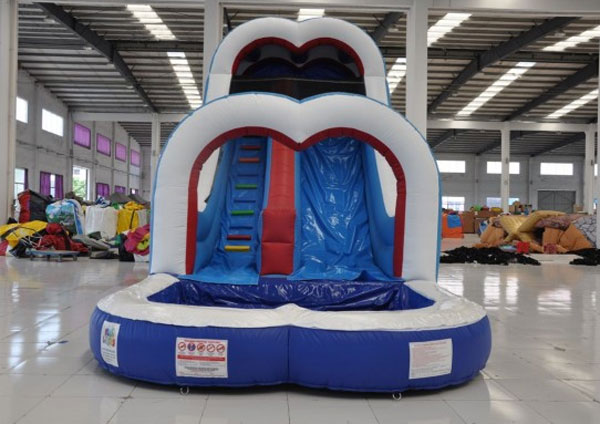 Toboggan gonflable à louer, en bon état général, permettant aux jeunes de rejoindre l'arrivée grâce à une glissade et un grand bassin, pour mieux s'amuser.