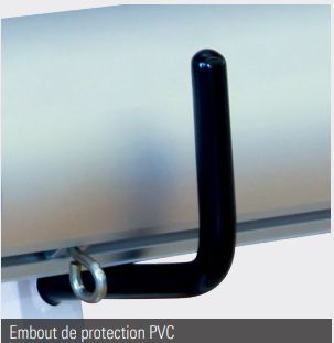 Les embouts de protection en PVC noir viennent sécuriser les extrémités du châssis, limitant les chocs contre les murs, sols ou poteaux et réduisant les risques de dégradation du revêtement sportif.