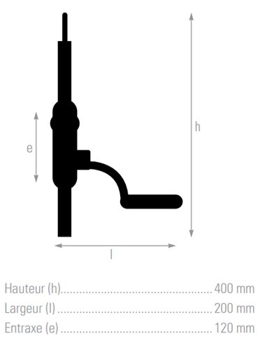 Son entraxe de 120 mm, sa hauteur de 400 mm et sa largeur de 200 mm assurent une compatibilité optimale avec la majorité des structures standard du marché.