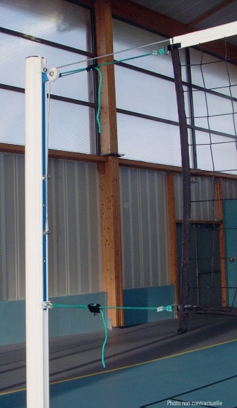 - Tension du filet par système à cabestan ou par treuil (drisse tendue par poulie et taquet coinceur)