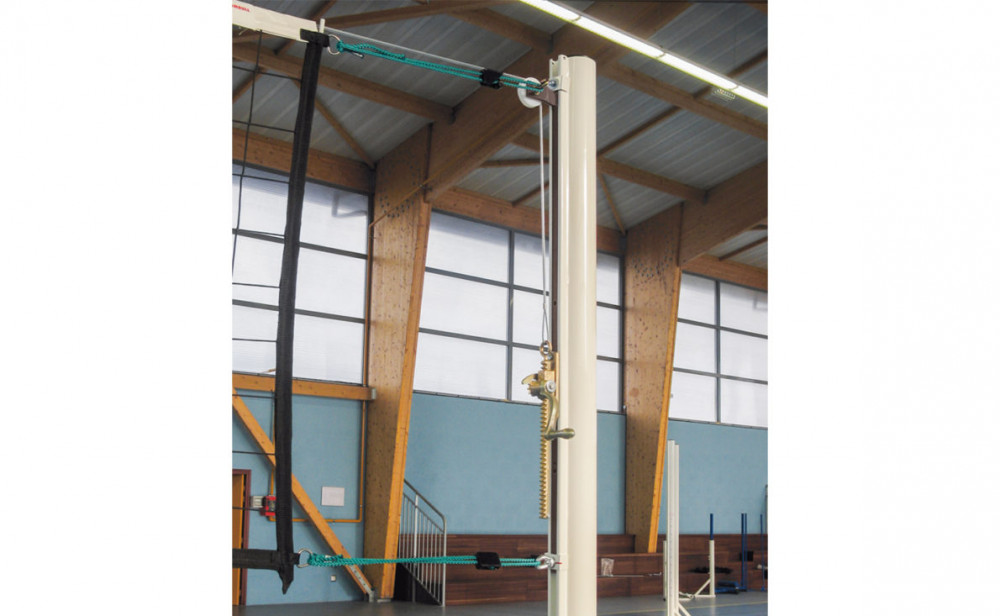 La tension du filet peut se faire par un système à cabestan ou par treuil (selon modèle).