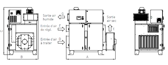 - Moteur CE (Commutation Électronique) avec variateur de vitesse intégré pour les ventilateurs process et régénération