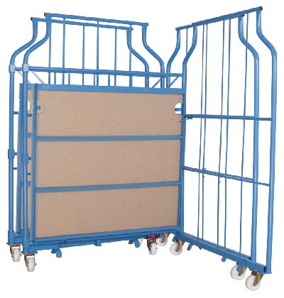 Cette corlette standard en couleur bleue est équipée de cadres latéraux en forme spéciale pour empiler.