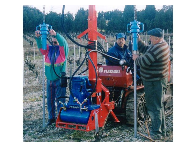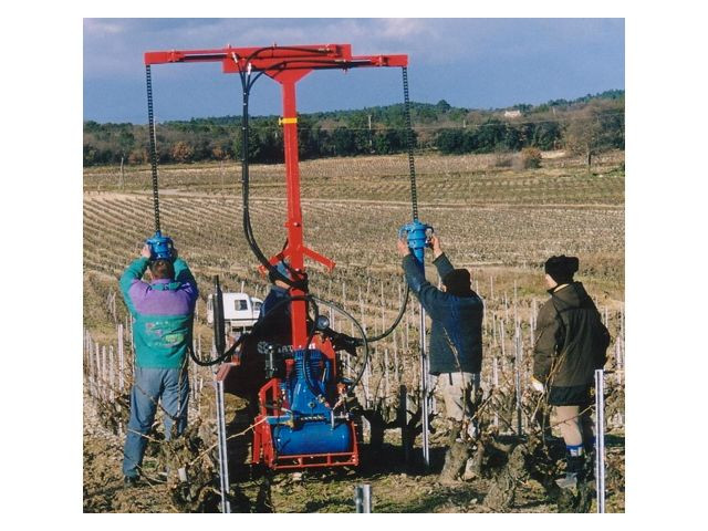 Cet enfonce-pieux pneumatique de 6.5 à 10 bars est spécialement préconisés pour le vignoble, pour enfoncer des piquets en bois et métal.